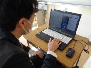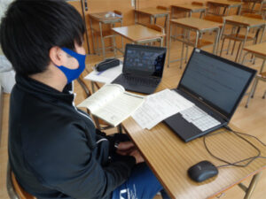 学校内での新型コロナウィルス感染の広がりは抑えられていますが、東京都の感染者数増加の状況を鑑みて今週末はMeetを使った授業に切り替えています。午前中に5教科の授業が短縮時間で行われ、午後は教科ごとに出題された課題に臨んでいます。今後もコロナ禍でも学びを止めない姿勢で、教育活動に取り組んでいきます。