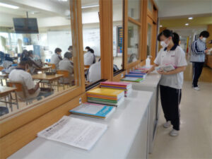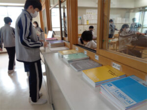 本校では基本的に宿題を出しておらず、自宅での学習については、生徒自身が計画を立てて内容や量、時間を自分で考えて進めています。自宅で行った学習は「自主学習ノート」に行って、毎朝教科の担当者に提出します。受け取った先生は、ノートの内容をチェックして、必要なアドバイスをしています。与えられた学びではなく、主体的な学びが、生徒の力を伸ばす秘訣となっています。