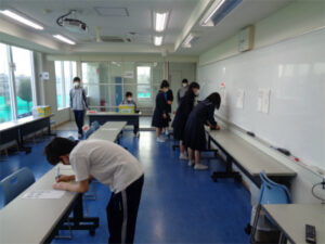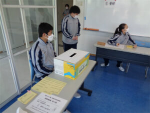 来年度の会長、副会長を選出する友愛会(生徒会)選挙が、朝、昼休み、放課後の時間を使って行われました。この選挙は、開票作業も含めて選挙管理委員会の生徒たちが運営しています。当選結果は明日発表となり、次年度の4月に行われる新入生歓迎会の準備から新総務委員の活動がスタートします。