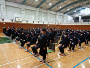 今年度の修了式が行われました。式に先立って、英検・漢検の合格者、英語スピーチコンテストの入賞者、小金井市体育協会の表彰を、3年生を含めて行いました。式では、校長先生からこの1年間の成長ぶりについて、身近な人への感謝を伝えることの大切さ、実りある春休みにするための心構えなどについてお話がありました。皆勤賞・精勤賞の表彰を行い、全員に一般賞が贈られ、2021年度を締めくくりました。