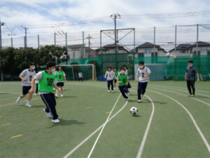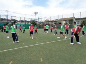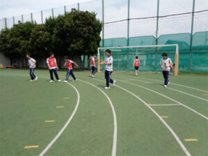 3学年最初の体験では、レクリエーションとしてクラス対抗フリースロー・サッカー大会を行いました。新しいクラスでの活動ということで、「クラスの団結力を高めること」が目標でした。2年間共に過ごしてきた仲間ということで、名前を呼んで声をかけたり、アドバイスをしたりすることが自然にできていました。またこれまでと比べると、友達と一緒に盛り上がる、積極的にゲームを楽しむことができるようになってきており、そうした姿にも成長を感じました。