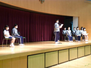 本校では生徒会のことを「友愛会」と称し、生徒全員が友愛会の専門委員会に属して活動しています。本日、第38期友愛会の発足会が行われ、友愛会会長と各専門委員長から今年度の活動方針についての話がありました。会長からは「SDGsの学びを行動に移すこと」「全校での活動を増やし、縦のつながりを強めること」が基本方針として全校生徒に伝えられ、各専門委員長からもこれまでの活動にとらわれない新たな取り組みの案が挙げられました。”Think Globally Act Locally”の視点で、世界にも視野を広げた生徒全員による積極的な活動を期待しています。