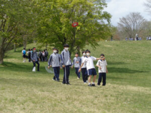 中学生になって初めての宿泊を伴う校外学習がスタートしました。 貸切バスにて「清里の森」の広場に到着後、まずは昼食です。広大な景色を見ながら食べたお弁当の味は格別でした。 昼食後はA~E組の混合で編成した活動班でディスクゴルフ。班員が協力しあいながら、楽しそうに活動していました。その後は、散策をしながら清里山荘に無事に到着しています。