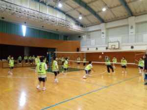 学校に戻って給食のあと、AB組はバレーボールを、CDE組はポートボールを行いました。それぞれ、チーム対抗戦でチームワークを生かしたプレーで盛り上がり、拍手が起こっていました。