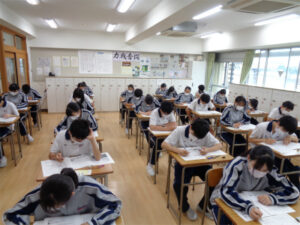 本日、3年生は6月の校内模試を行いました。1学期も中盤になり、これまでの定期テストや模擬試験を経て各自の課題が明確になってきています。先日、各高校が会場となる会場模試もそれぞれが受験してきました。毎回の模擬試験を経て、自己の学習を分析し、日ごろの自主学習の充実化、レベルアップに繋がることを期待しています。