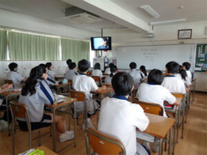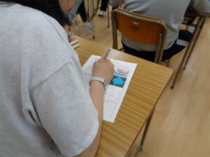 3年生の生命科では1学期に「平和」をテーマに、掘り下げた学習をしています。本時は民族間の衝突がおきたコソボ問題を取り上げ、憎しみを越えて平和を取り戻せるかについて考えを深めました。「過去のことも忘れないが、未来へと歩みだし、歩み寄ることが大切」「人間は何かに縛られると自由を訴える。自由を作り多様性を生むと対立が起こる。どうやったら全てが平等かつ平和になるのか。人間の永遠の課題」「お互いのことを許し合わなければ、平和な世の中にはならないと思う」「互いに自分の非を認め合うこともまた大切」…生徒たちは、平和に向けてどういう取り組みをしていかなければならないのか?という問いに対して、真剣に向き合っていました。