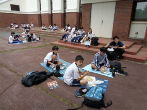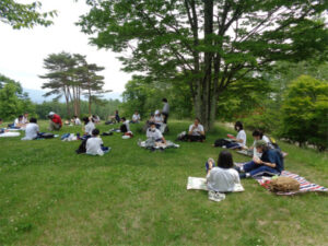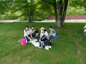 一年生の「清里山荘合宿」が始まりました!気温はこの時期にしてはやや高めでしたが、雨に降られることもなく、高原に吹く風は心地よかったです。美しの森では、クラスごとに昼食をとり、その後は活動班に分かれてディスクゴルフを行いました。友達同士で協力するなかで、たくさんの笑顔が見られました。夕飯には山梨名物の「ほうとう」をおかわりする生徒の姿も。清里での初日は充実した一日となりました。