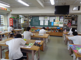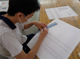 3年生の大きな行事である修学学習をテーマに、「京都・奈良へ」というタイトルで絵画制作を始めました。法隆寺の五重塔や金閣寺、行き帰りの新幹線をモチーフに描きながらイメージを広げます。これまでに培ってきた描画技法を活用し、新たな表現方法にも挑戦しながら、中学生活の集大成となる絵画作品を目指します。鉛筆での下描きを進めたのですが、様々なアイデアが生まれてきており、自己表現力が豊かに育まれてきたことが伝わってきます。完成がたのしみです!