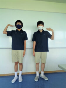 生徒の体調管理のために、夏服期間は夏制服の代わりに学校指定の紺ポロシャツとハーフパンツを着用できます。最近の暑さでポロシャツ、ハーフパンツの生徒が増えてきました。「長ズボンより段違いに涼しい。」「スカートで椅子に座ると温かいけど、ハーフパンツだとさっぱり!」などの感想が聞かれました。厳しい暑さが続きます。健康に気をつけて1学期のまとめを迎えてください。