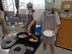 今日の調理実習では「ベーコンエッグマフィン」を作りました。今月から「自分で一品を作ってみる」ことを目標に取り組んでいきます。これまでの積み重ねにより、手順を聞いて理解すること、自分で必要な準備をすること、適切に調理器具を使うこと、などが定着してきていました。