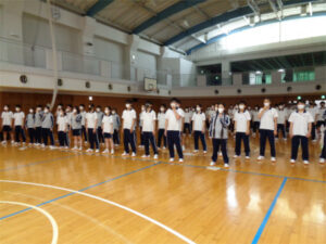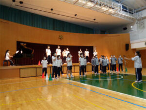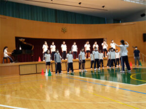 初めての人前での合唱をほぼ本番同様の形で行い、生徒たちは緊張しながらも集中して取り組みました。自分のクラスの合唱だけでなく他のクラスの合唱を間近で聴くことで、自分たちの長所や改善点にも気づくことができる良い機会となったようです。ここから本番まであと一週間、さらなるレベルアップを目指します。