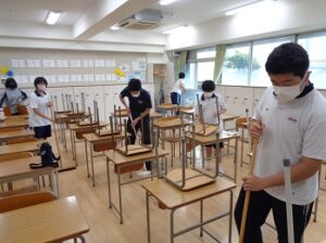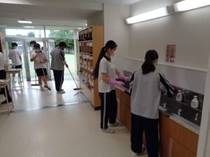 アクティベーション委員会で、1~3年生までの縦割り班を編成しました。学年の枠を越えて交流を深めることや学校生活を活性化させることをねらいとしています。その1つである縦割り清掃がスタートし、協働して掃除を行うことで班員同士が打ちとけてきたようです。