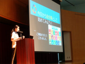 全校生徒が参加して1学期の「SDGs Day」が行われました。この企画は、SDGsプロジェクトに所属する生徒たちが、SDGsについての基礎知識や身近にできる活動について紹介をし、東中生にSDGsについて関心や自ら行動する意識を持ってもらうというものです。企画の内容は以下の通りです。