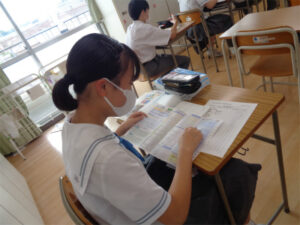 3AB組では適性検査を行いました。検査当日は皆が一生懸命に各種の検査に取り組み、学期末に結果が返却されました。結果を見て、自分の志望の進路先が適正と診断されて喜んでいる生徒や、自分の気づかない一面を知って驚いている生徒など、様々でした。現在行われている夏期講習、高校見学、ひいては受験校の絞り込みに入りますので、大いに参考にしてほしいです。
