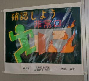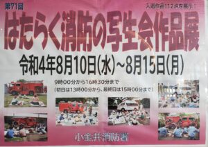 また、8月10日~15日には、「はたらく消防の写生会」で優秀賞に選ばれた2年大隅さんの防災ポスターが、小金井市の宮地楽器ホールに展示されました。