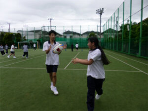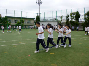 10月に実施されるスポーツ大会に向けた練習が本格的に始まっています。今回の学年合同体育では、赤・緑・白の3チームに分かれ、学年競技の練習を行いました。2年生の学年競技は「ムカデ競争」と「球技リレー」。まだ練習を始めたばかりにもかかわらず、息の合ったプレーが随所に見られ、この1年の成長を感じました。中心学年として、3年生とともにスポーツ大会を盛り上げていってほしいです。