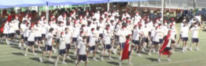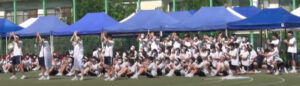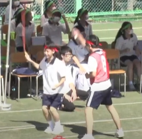 爽やかな秋空のもと、スポーツ大会が開催されました。コロナ禍での開催が3回目になりましたが、感染防止対策をしながらの練習を例年以上に行えたことで、どの競技も白熱!また、3年ぶりに保護者が観戦し、より力の入った競技や応援が繰り広げられ、大いに盛り上がりました。スポーツ推進委員会企画「縄スイ」(なわとび推進プロジェクト)は朝や昼休みの練習を促し、全校生徒の練習総計は1836回!例年の6倍の練習量で、大会の機運を大いに高め、成果につなげました。スポーツ推進委員長から「スポーツ大会は、1・2・3年生の混合チーム、縦割りでできる素晴らしい行事です」というまとめの話があり、充実感に満ちた大会となりました。