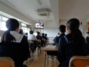 インクルーシブ教育の一環として、CDE組の「技能」の授業風景動画を視聴しました。細かい作業に集中して取り組む様子、精巧な作品を仕上げる姿はとても新鮮に映ったようで、「おー!」と歓声が上がるシーンもありました。視聴後にはCDE組の教室へ行き、称賛の声をかけている生徒もおり、課題に向けて尽力する姿に心を打たれたようです。2学期に入り、京都奈良修学学習、スポーツ大会を経て、AB組、CDE組の関わりがより深まっています。互いの目標を共有しながら、残りの中学校生活も共に励んでほしいです。今後はHRで直接作品などを見せる機会をもつ予定です。