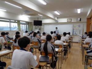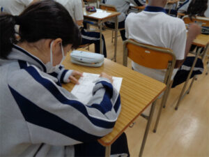 学園祭に向けて3年生AB組はSDGsに関する個人プレゼンテーションを行います。生命科、SDGs Day、各教科で学んだことをもとに、各自が問題意識を強く持ったテーマを1つ選び、発表します。題材を同じにして、英語科の学園祭展示”My opinion on SDGs(SDGsに関する私の意見)”にも取り組みます。昨年度の探究科の経験を生かして、3年間の集大成となる発表を目指しています。
