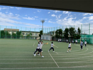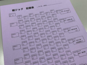 先月のスポーツ大会運営で達成感を感じたスポーツ推進委員会。体力向上を目指し、年間を通してスポーツを推進していくために朝のジョギング(通称:朝ジョグ)を企画しました。始業前の8:05~8:15の間、校庭を走り、周回した数を専用の用紙に記録します。空気の澄んだ秋晴れの朝を気持ちよくジョギングしている姿はとても爽やかで、参加した生徒は充実感に溢れた表情をしていました。今後は定期的に優秀な記録を発表し、モチベーションを保つ工夫をしていくようです。