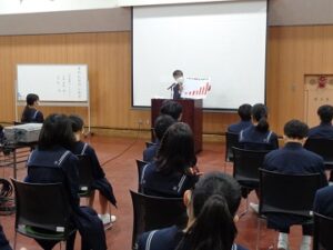 小金井警察署から講師をお招きし、1年AB組を対象とした「薬物乱用防止教室」が行われました。薬物の危険性や中学生年代の事例件数の多さは、生徒たちが薬物問題を身近に考える良い機会となりました。また、DVDを鑑賞することで、実際に直面した際には強い意志で断ることや大切な人を思い浮かべるなど、具体的な対応についても学ぶことが出来たようです。
