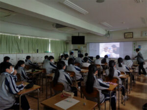2学年の生命科は3学期から「命の尊厳」というテーマで学習しています。今回の授業では、小児がんと闘った少年と彼を支えた家族のドキュメンタリーを題材にしました。余命を宣告された後、治療法について難しい選択を迫られる場面では「自分だったらどうするか」という視点で、また最期の日まで前向きに生き人生を全うした姿から命の尊さについて学び、考えを深める機会となりました。