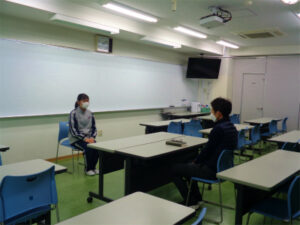いよいよ入試本番が迫ってきた3年生AB組は面接練習にも力が入っています。事前にプリントを配布し、面接試験の流れやよく聞かれる質問などを確認しました。練習は個別または集団形式で、入室から退室まで本番さながらに行います。これまでの学校生活において豊富な経験があること、幾度となく人前で話す機会を積み重ねてきた東中生の強みが面接練習でも生かされ、回を重ねるごとに自信をつけています。