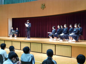 本校では生徒会のことを「友愛会」と称し、生徒全員が友愛会の専門委員会に属して活動しています。本日、1年間の活動の振り返りの場として、第38期友愛会の報告会が行われました。どの委員会も昨年度の活動をただ踏襲するのではなく、今年度ならではの工夫を凝らしたり、斬新なアイデアで新たな試みをやってみたりと、38期生のカラー溢れる活動が行われてきたことが伝えられました。生徒が主体となって学校生活を盛り上げる伝統が、また次の代へと受け継がれていきます。
