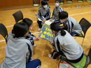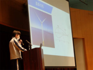 3学期のSDGs Dayは、第一部ではプロジェクト生徒による発表、第二部では講演会を実施しました。第一部は、国連WFP(世界食糧計画)に関するクイズのあと、「風力発電」と「FSC(森林管理協議会)」について生徒による発表が行われました。第二部では、国連WFP協会から講師をお招きして、『SDGsと国連WFPの食糧支援~飢餓ゼロを目指し私たちにできること~』と題して、飢餓の状況、国連WFPの活動内容、SDGs とWFP の活動の関係性、食品ロスの問題などについてのお話を伺いました。続いて「食品ロス削減と飢餓ゼロのためにどんな具体的なアクションができるだろう?」というテーマでグループワークを行い、課題解決に向けた具体的なアイデアを班のなかで発表し合いました。今回の講演では、いま世界で起きていることを知ることができ、自分たちにできる具体的なアクションについて考えを共有する貴重な機会となりました。