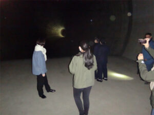 今回のテクノロジー探検隊は神田川・環状七号線地下調節池の見学です。この地下調節池は、神田川中流域の水害対策として環状七号線の道路下に延長4.5km、内径12.5mのトンネルを建設し、洪水約54万立方メートルを貯留する施設です。トンネルとともに善福寺川取水施設の見学も行いました。トンネルと川の水を管理する装置や地下43mのトンネルを実際に見学して、皆とても強い興味を持ったようです。本当に貴重な体験ができました。