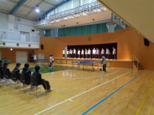 4月12日(水) 1ABクラス生徒に向けて、上級生からの部活紹介が行われ、10個の部活と2つの同好会の紹介がありました。どの部活も工夫されたパフォーマンスがあり、1年生も目を輝かせていました。