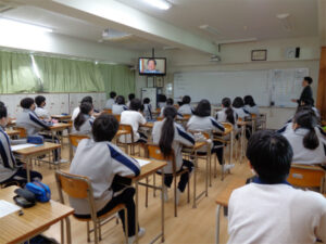 自分の存在の重さを知り、他の人の重さも感じる生徒であってほしい。そんな願いのもと、全学年で週1回ある「生命科」の時間。3年生では「平和」と「死生観」について学びを進めていきます。スタートの今日は若者を死に向かわせた作戦とも言われる特攻について映像と資料を合わせて学びました。また映像では現在、その事実を語り継ぐ方々の活動についても触れられています。