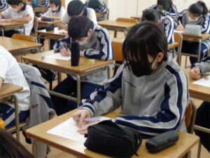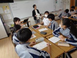 2学年の生命科の初回の授業では、「バリアフリー」・「ユニバーサルデザイン」・「ノーマライゼーション」など、聞いたことのある言葉の意味を考えることで、共生社会についての学びの導入としました。グループごとに具体的な施設や取り組みを挙げるなどして、言葉を定義しようと積極的に話し合う様子が見られました。 今後は、共生社会の様々な側面について考えていきます。