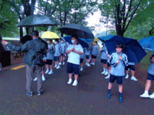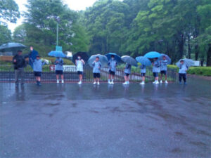 本日の体験学習では学校近くの小金井公園内を散策して、5月の清里山荘合宿のハイキングに向けた練習をしました。列や歩く速さを意識 することをポイントとし、雨天だったこともあり傘の差し方も合わせて確認しました。江戸東京たてもの園を外から見学した際、生徒からは「行ってみたいな!」と発言があり、興味を持ったようでした。連休を利用して家族で訪れてみるのも社会学習の一つになりますのでお薦めです。