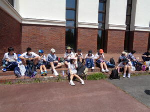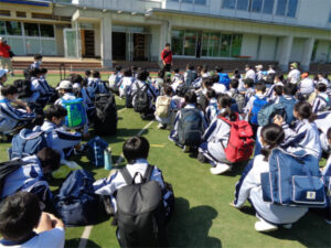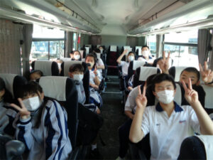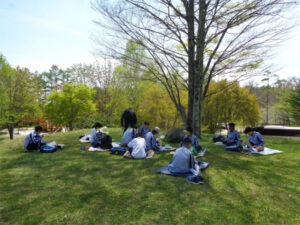 楽しみにしていた清里山荘合宿が始まりました。清里の森に着くと早速お昼ごはん。八ヶ岳連峰を臨む草原には心地よい風が吹き抜け、レジャーシートを広げてクラスや生活班ごとに食べるお弁当は格別でした。食事のあとは、活動班に分かれてフライングディスクゴルフに挑戦。AB組、CDE組の生徒が協力しながら、たくさんの笑顔が見られました。晴天に恵まれた初日は、充実した一日となりました。