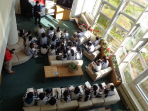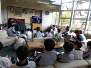 清里山荘合宿では、これまでの学園の歴史を振り返り、創立者の想いを理解するために「学園理解の時間」があります。幼稚園からスタートしたこの学園が、保護者の強い要望によって、小学校、中学校、高等専修学校が設立され、さらにはボストンヒガシスクール開校につながっていく様子やそれぞれの開校式で創立者北原キヨ先生がどのようなことを語ったのか、当時の映像を観ながら振り返ります。キヨ先生を直接知る先生からは、当時のエピソードやキヨ先生が生徒たちに託した願いについてお話を聞く貴重な機会となりました。