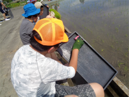 田植えは、苗を等間隔に植えるなど難しさもありましたが、任された範囲の苗付けを全て終えたあと、自分たちの作業の成果を見て達成感を得たようでした。
