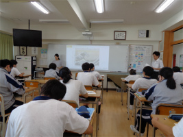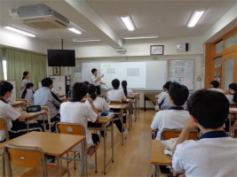 本校では、「新たな価値観を創造する本質的な学び」という教育の重点のもと、通常の授業の他に教科横断型授業(コラボ授業)を取り入れ、幅広い視野での学びをすすめています。今回3年生では数学と美術がコラボして「黄金比と白銀比」について扱いました。それぞれの比がどのような長方形から導かれるのかを計算した後、美術作品の中で実際にその比が使われているものの紹介を行いました。色々な例を見る中で、日常利用している用紙にも比が表れてくることを実感する良い機会となりました 。