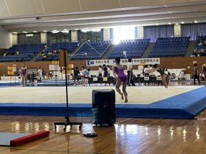 私は都大会で個人総合3位に入賞し、この関東大会に出場することができました。試合は明日からになりますが、会場練習を無事に終えて、明日の本番に自信がつく練習ができました。上手な選手がたくさんいて、とても勉強になり高い目標を持つことができました。