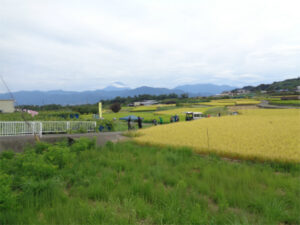 午後は3年生が田植えをした田んぼに移動し、鳥よけのネット張りや草むしりなどの環境整備を行いました。天候に恵まれ、富士山がはっきり見える快晴ながら、過ごしやすい気温の中で活動ができました。注意事項を聞き、それぞれの役割に懸命に励みました。作業の合間にはザリガニ釣りを楽しんだり、農家の方から豆知識を教えて頂いたりといった場面もありました。