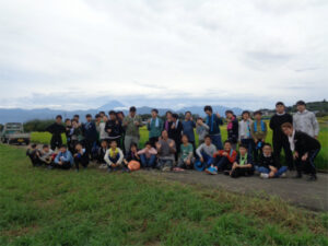 合宿2日目の午前中は農園にて、ぶどうにかけてあった笠を外す作業や、商品としてのパック詰め、除去した笠の仕分けなどの作業を行いました。立ったままの仕事は大変でしたが、それぞれが得意な工程を担当し、力を合わせて取り組みました。