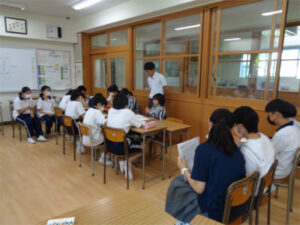 ディベートは本来どれだけ論理的に話をすることができるかで勝敗を決めます。しかしこの単元ではそれを1番の目的にはせず、1つの問題について多方面から深く考えるツールとしてディベートに取り組んでいます。今後、ディベートで考えたことを基に、「両方に問題点はある中で、ベストな方法は何か」「両方の強みを生かした新たな方法はないのか」という方向で話し合いを進めていく予定です。