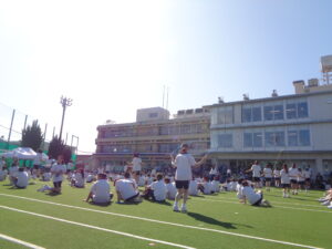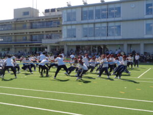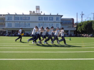 秋風の中、スポーツ大会が盛大に開催されました。復活した競技もあり、内容盛りだくさんで、どの競技も白熱!保護者の応援の中、力の入った競技や応援が繰り広げられ、大いに盛り上がりました。閉会式でスポーツ推進委員長より「大きな応援でスポーツ大会自体の活気もあり、それぞれの力を存分に発揮できてよかった。」と話があった通り各チームで、例年以上に熱が入った充足感に満ちた大会となりました。