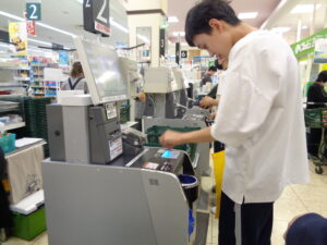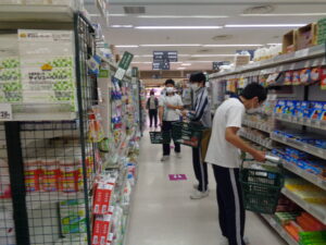 体験学習で校舎を出て近隣のスーパーマーケットへ行き買い物を行っています。クラス単位で活動し、家族と相談して決めた商品を買いに行きました。今回、その商品が店頭になかったというケースがあり、その時の対応も学ぶ良い機会となりました。また、多くの商品の中から自分で考えて、食べてみたい・使ってみたい商品を選ぶことも良い学びとなっています。初めてセルフレジでの支払いを経験した生徒もいましたが、店員の方が丁寧に説明をしてくださり、金額を支払うことができていた生徒も多くいました。