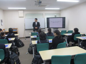 1~3年生AB組希望者対象に「ふれあい天文学」特別授業が国立天文台(三鷹市)にて行われました。「ふれあい天文学」は国立天文台の主催で, 天文学者が直接生徒に向けて講義をする企画です。今年の特別授業は,天文台副台長の斉藤正雄先生による「宇宙生命」に関する講義でした。太陽系外には,生命に必須のアミノ酸は発見されていませんが,アミノ酸を構成する物質は発見されており,発見までの過程や方法などを電波天文学の立場からていねいにお話しくださいました。また,研究には「問い」が大切であることを指摘され,本校の探究科の取り組みを評価していただき,生徒たちも自信を持てたようです。講義終了後は,天文台内を自由見学し,テスト後の気分発散にもなりました。