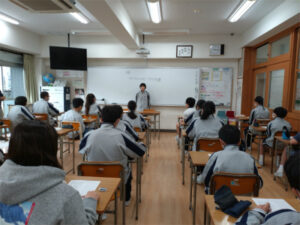 先週から今週にかけて12月14日(木)に行われるスピーチコンテストのクラス予選が行われています。自分が最も伝えたいことをテーマに、1分30秒以上(400字~600字)でスピーチします。内容(テーマ設定、言いたいことが伝わるか、わかりやすさ、具体例等)、表現(声の大きさ、速さ、姿勢、話し方等)を観点にしてクラス全員で審査を行い、2名が本選に進出。堂々とスピーチする姿に成長を感じています。