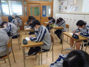 2学年の生命科では「命の尊厳」というテーマの第3回目の学習を行いました。1・2回の授業では小児がんの少年のドキュメンタリーを見て、闘病を続けながらも前向きに生きる姿から自分と違う境遇にある子どもへの想像力をもつことを学びました。