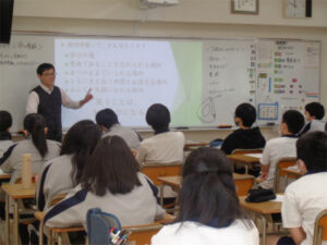 それを踏まえ、今回は院内学級に通った経験のある先生から、小児がんや院内学級について話を聞きました。実際の体験談として聞くことで、より身近に考えることができたようで、生徒の感想には次のようなものがありました。