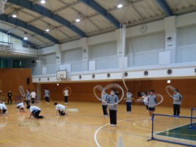 3学期に入り、発表会に向けての練習が本格化してきました。CDEクラス男子はフラフープや縄を使ったマスゲーム、女子はダンスと、それぞれの演目に集中して取り組んでいます。全体の流れを摑みながら演技の中でタイミングを覚え、細かな動きのメリハリや表現などを練習しています。来週の予行・照明合わせを意識してそれぞれの課題に向けた仕上げに入ります。