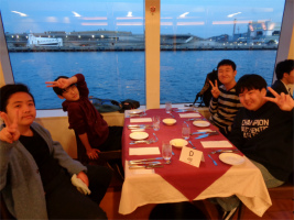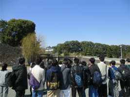 初日はまずバスでの移動。ガイドさんから車窓の風景から分かる、東京〜横浜の細かい歴史を聞き、感心していました。途中で立ち寄った皇居周辺では好天に恵まれ、ゆっくり見学ができました。横浜では班ごとにガイドウォークツアーです。長時間歩いて、理解して、「横浜通」も増えたでしょう。疲れもあったと思いますが、A〜E組の生徒がお互いに声をかけながら班がまとまり、その後のディナークルーズまで班活動を楽しみました。